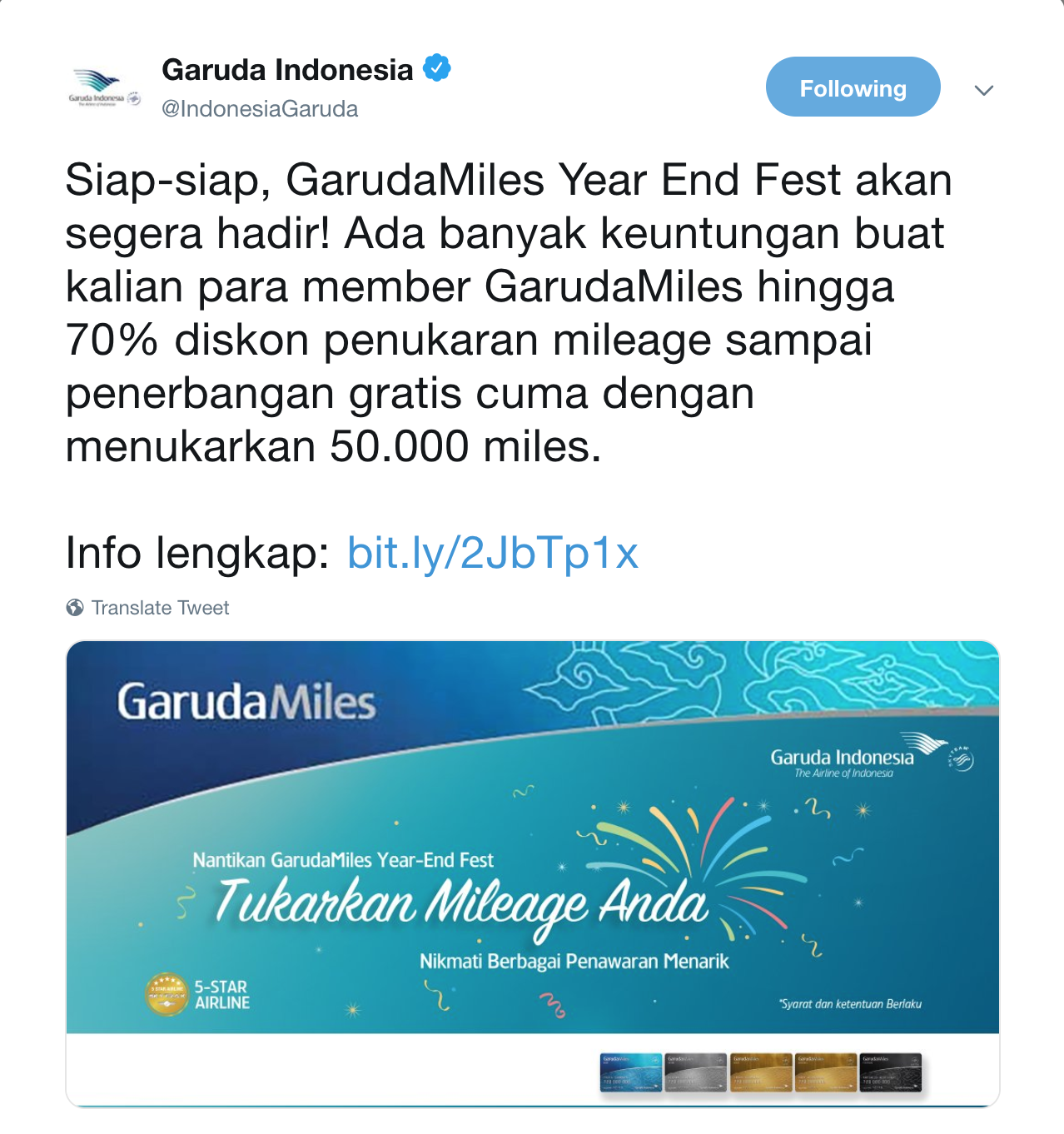 Mileage yang diperoleh hanya dapat dikreditkan satu kali untuk setiap aktivitas dan hanya dibukukan pada satu program frequent flyer.