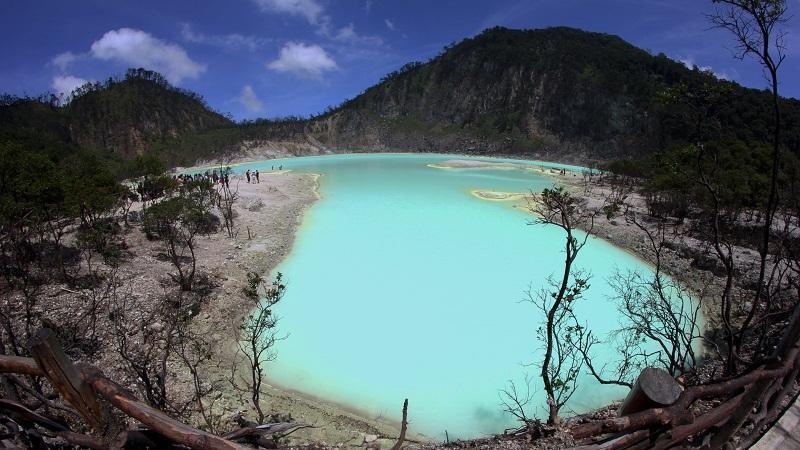 Kawah putih ciwidey terkenal dengan warna airnya yang putih.