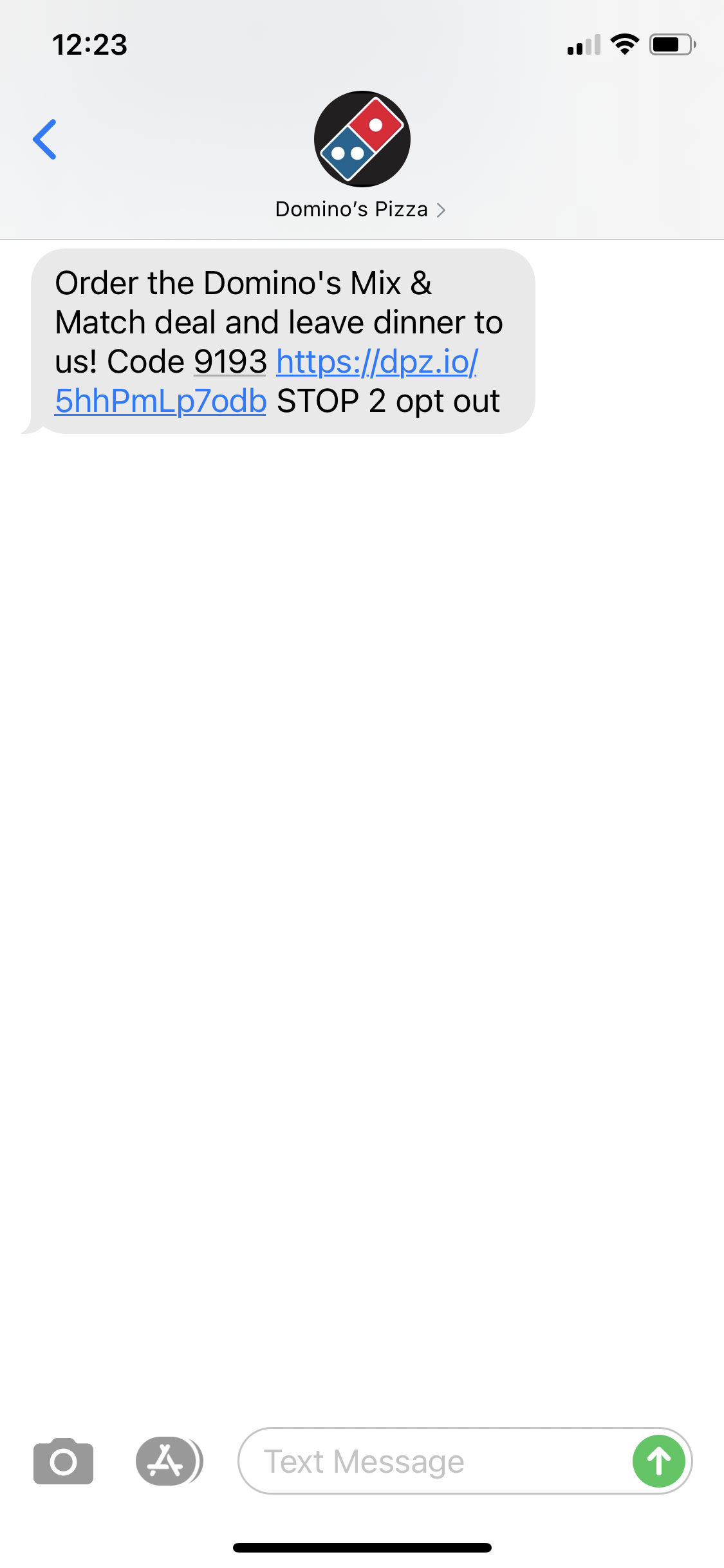 Domino's coupon for 50% off pizzas.